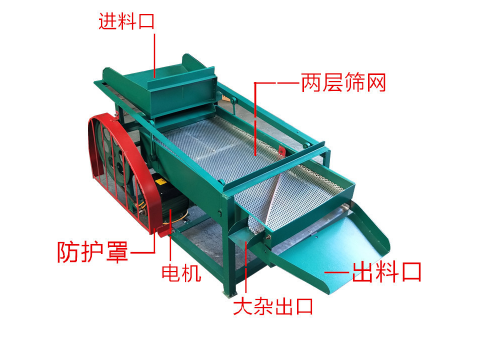 進(jìn)行初次篩分層篩分,以比較大的網(wǎng)孔,作為大塊雜質(zhì)篩分,如玉米芯,黃豆片,花生皮等等。大的雜質(zhì)會(huì)留在層篩網(wǎng)中,通過電機(jī)來回篩選抖動(dòng),把雜物振到雜物出料口,需要篩分的物料會(huì)漏到下層篩網(wǎng)中,進(jìn)行下一層篩網(wǎng) 層篩網(wǎng),網(wǎng)目比較小,也就是糧食機(jī)的小塊雜質(zhì),篩網(wǎng)網(wǎng)孔比需要篩分的物料大。