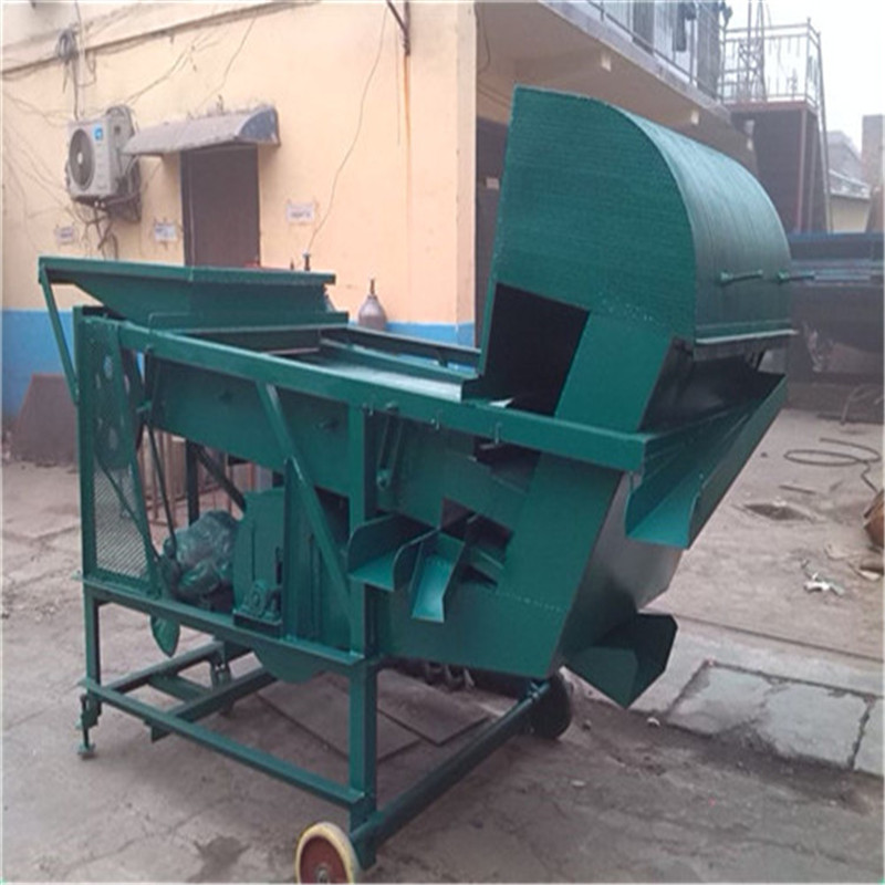 該清選機含有三層篩網,工作時先經過第一層篩, 把原糧中比所需篩選物大的的雜質、葉子、泥塊等雜物分離出來,再經過第二層篩網經好糧分離開,剩下第三層篩網所篩物料即是比好糧小或碎的一些其他雜物。注:再好糧篩出過程中,經過機器本身自帶風機風選出比較輕的灰塵雜物,好糧由前端的出來口排出。