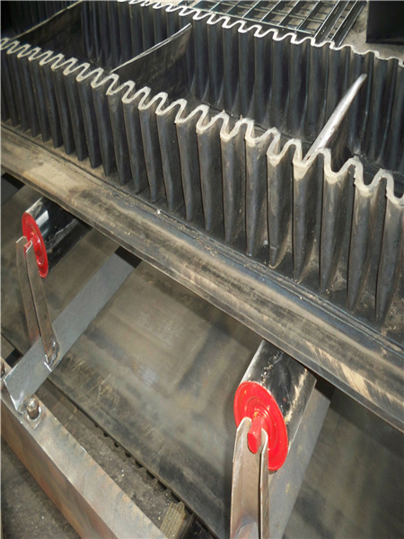 擋邊帶式輸送機其結構是在平行橡膠運輸帶兩側黏上可自由伸縮的橡膠波形式的裙邊,在裙邊之間又粘有一定強度和彈性的橫隔板組成匣型斗,使物料在斗中進行連續(xù)輸送。擋邊帶式輸送機可廣泛用于煤炭、糧食、建材、化工、水電、和冶金等部門,在環(huán)境濕度為19°-+40°范圍內(nèi),輸送堆積比重為0.5-2.5t/m3的各種散裝物料。對于輸送有特殊要求的,如:高溫、酸、堿、油類物質(zhì)或有機溶劑等成分物料,采用特殊的擋邊輸送帶。