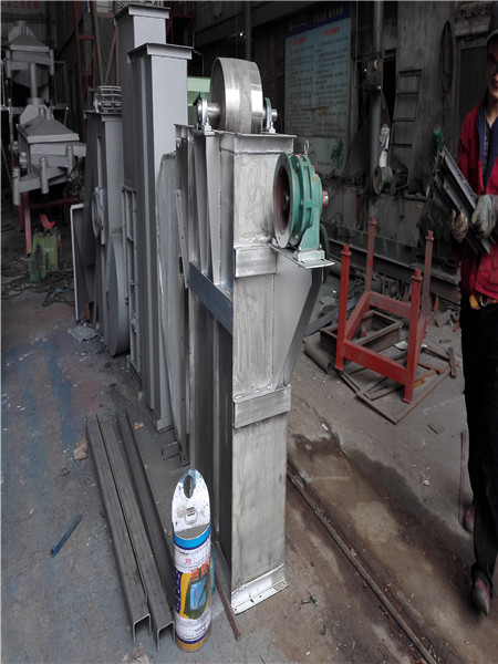 玉米斗式提升機由運行部分(料斗與牽引膠帶)、帶有傳動滾筒的上部區(qū)段,帶有拉緊滾筒的下部區(qū)段,中間機殼,驅動裝置,逆止制動裝置等組成。TD型斗式提升機適用于向上輸送松散密度ρ<1.5t/m3粉狀、粒狀和小塊狀的無磨琢性和半磨琢性散狀物料,如煤、砂、焦末、水泥、碎礦石等。