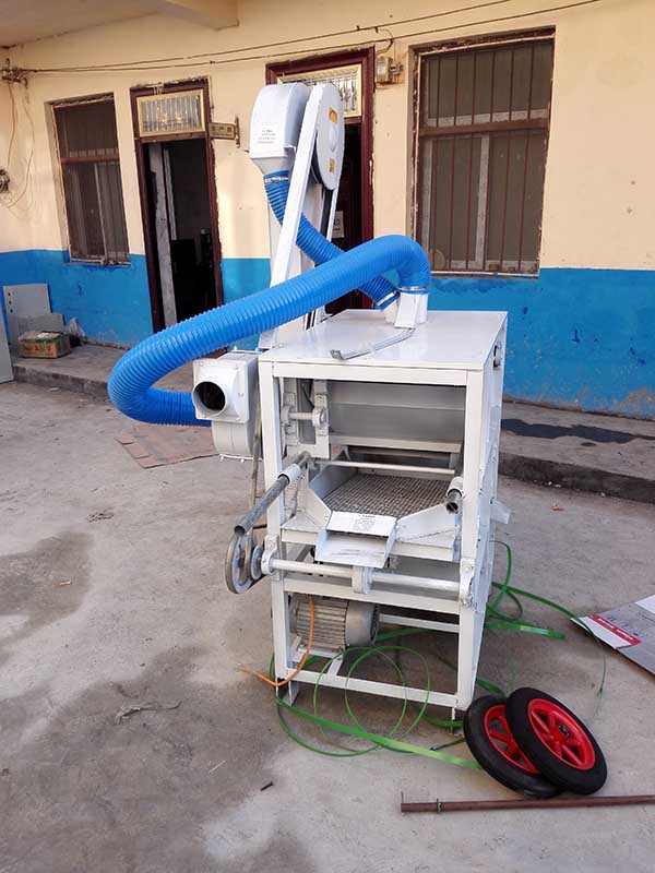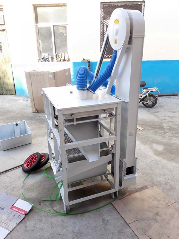 該篩選機(jī)可選用220V-2.2kw或380V-1.5kw電機(jī)做動(dòng)力源,集風(fēng)選和篩分為一體,能干凈徹底地清除糧食或油料種子里面的各種雜質(zhì)和塵土。本機(jī)為種子凈選機(jī),篩選種子,去除種子中的雜物和沙塵使用,帶有抽風(fēng)機(jī),兩層鐵框篩網(wǎng)好用壽命長(zhǎng)。多功能帶抽風(fēng)機(jī)振動(dòng)篩設(shè)計(jì)合理,結(jié)構(gòu)緊湊,生產(chǎn)效率高,一機(jī)多用,可套風(fēng)塵袋室內(nèi)、室外均可用,經(jīng)濟(jì)實(shí)惠,是廣大農(nóng)戶的產(chǎn)品.糧食篩選機(jī)結(jié)構(gòu):該機(jī)由料斗、機(jī)架、傳動(dòng)機(jī)構(gòu)、風(fēng)機(jī)、風(fēng)道等五部分組成,機(jī)架地腳裝有四個(gè)輪子,方便移動(dòng);篩網(wǎng)與機(jī)架采用分體式結(jié)構(gòu),便于更換各種不同目數(shù)的網(wǎng)篩