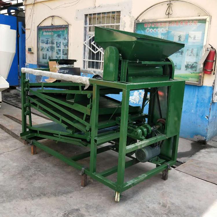 將花椒放入進(jìn)料口---------進(jìn)料口下方有一個(gè)分離器將花椒耙籽殼分離開--------分離的混合物料落入回旋篩--------回旋篩分為3層-------一層出料霉花椒、花椒葉、花椒枝-----一層復(fù)式篩網(wǎng)篩的是花椒枝----------二層為花椒枝出料口-------復(fù)式篩網(wǎng)為花椒籽出料口--------花椒籽出來(lái)時(shí)有風(fēng)機(jī)可以增加花椒籽的凈度。提高花椒凈度---------底層出來(lái)的是花椒殼