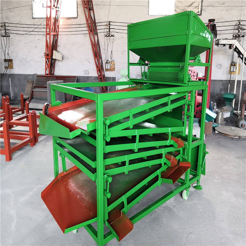 家用花椒除雜篩是利用打碎分離+篩選的方式進行花椒打把脫粒篩選處理,原枝花椒放進進料斗后把花椒把打下來,花椒籽從殼里打出來,通過下料器落到篩面上篩選,一層篩選出來的梅花椒和大的花椒枝葉----二層是花椒籽,會落到風(fēng)機口進行二次風(fēng)選----三層進行復(fù)試篩選----四層是成品椒殼,可以直接打包,我們都知道花椒篩分機都是上下篩,下篩篩出來的花椒枝葉,以前十幾個人干的工作,現(xiàn)在只需一人就能完成,篩選凈度高,產(chǎn)量也大。